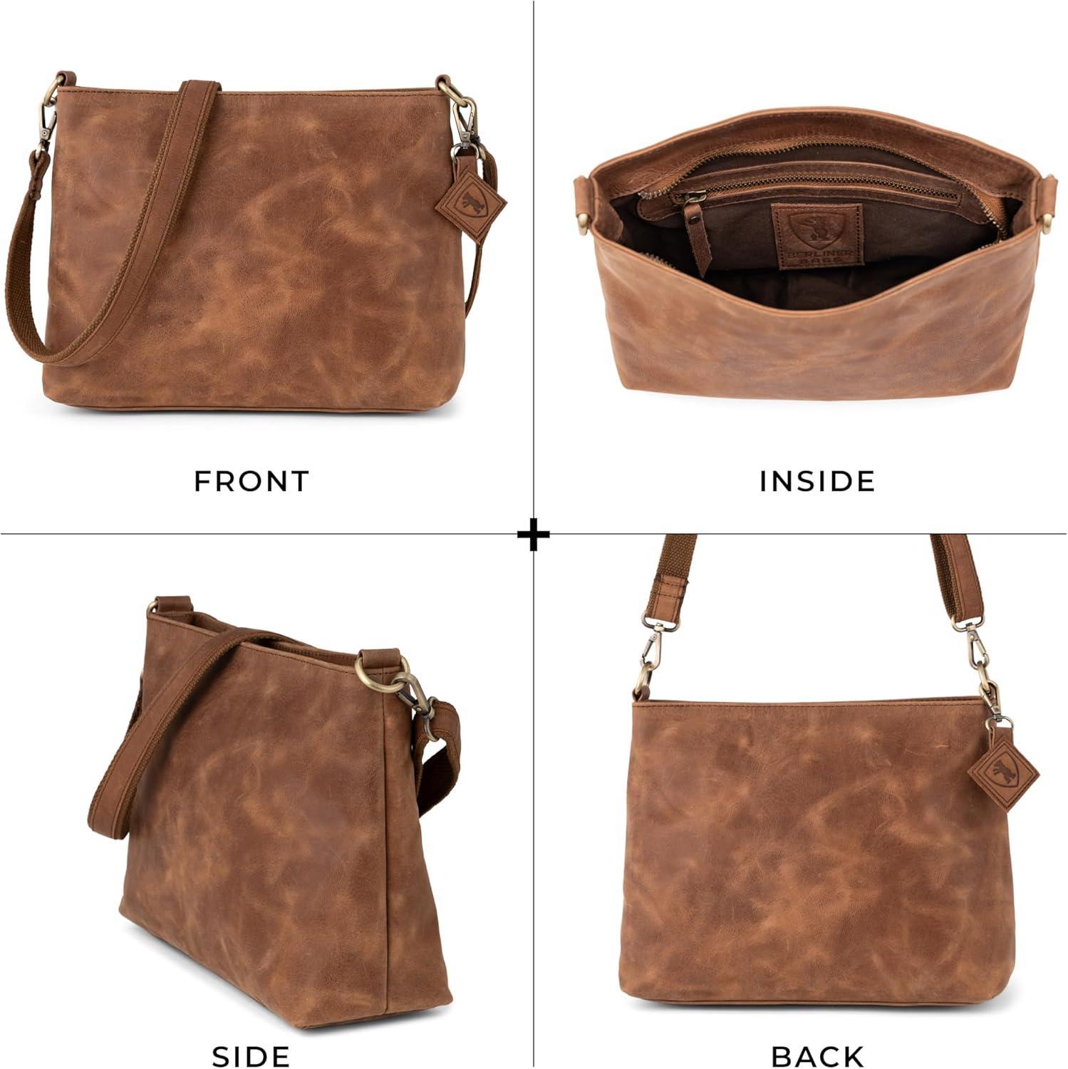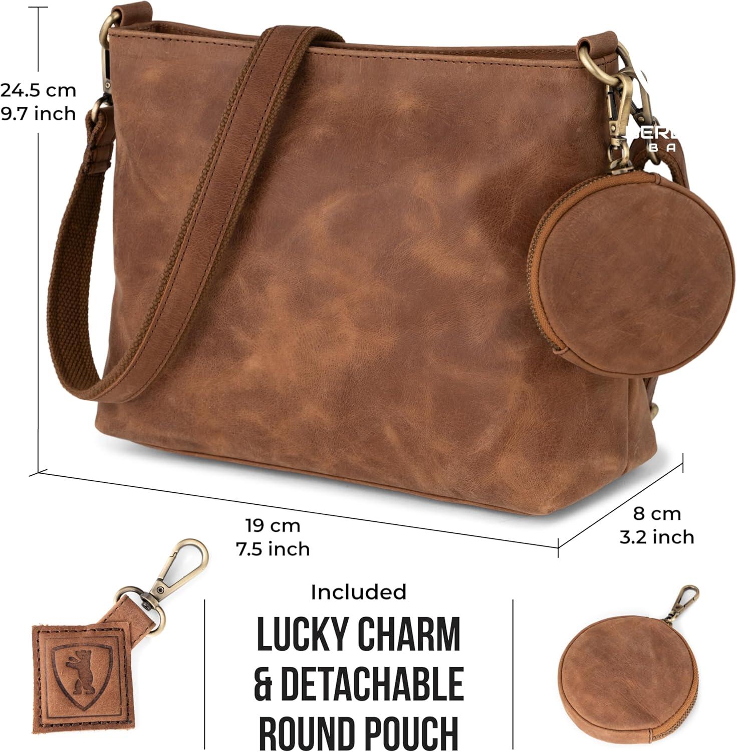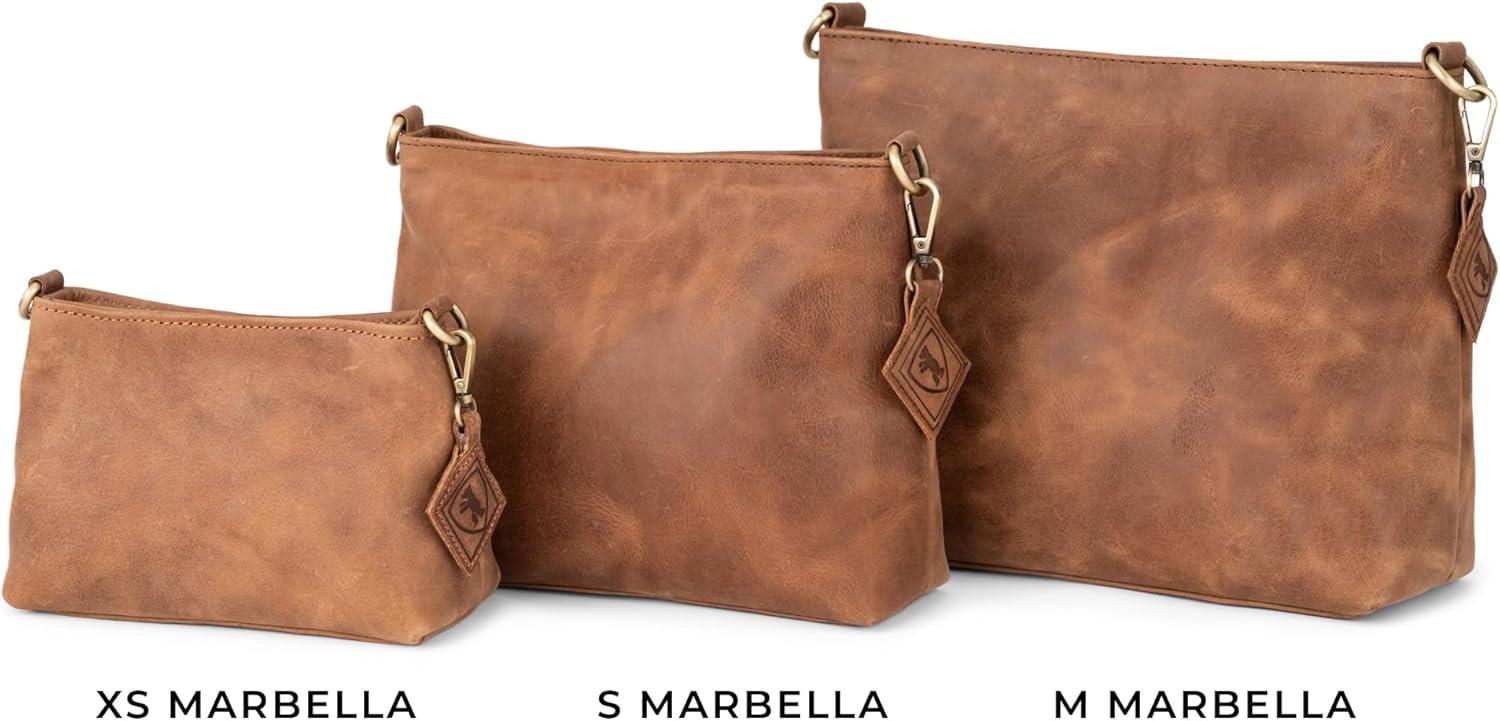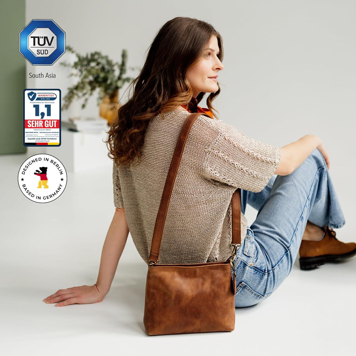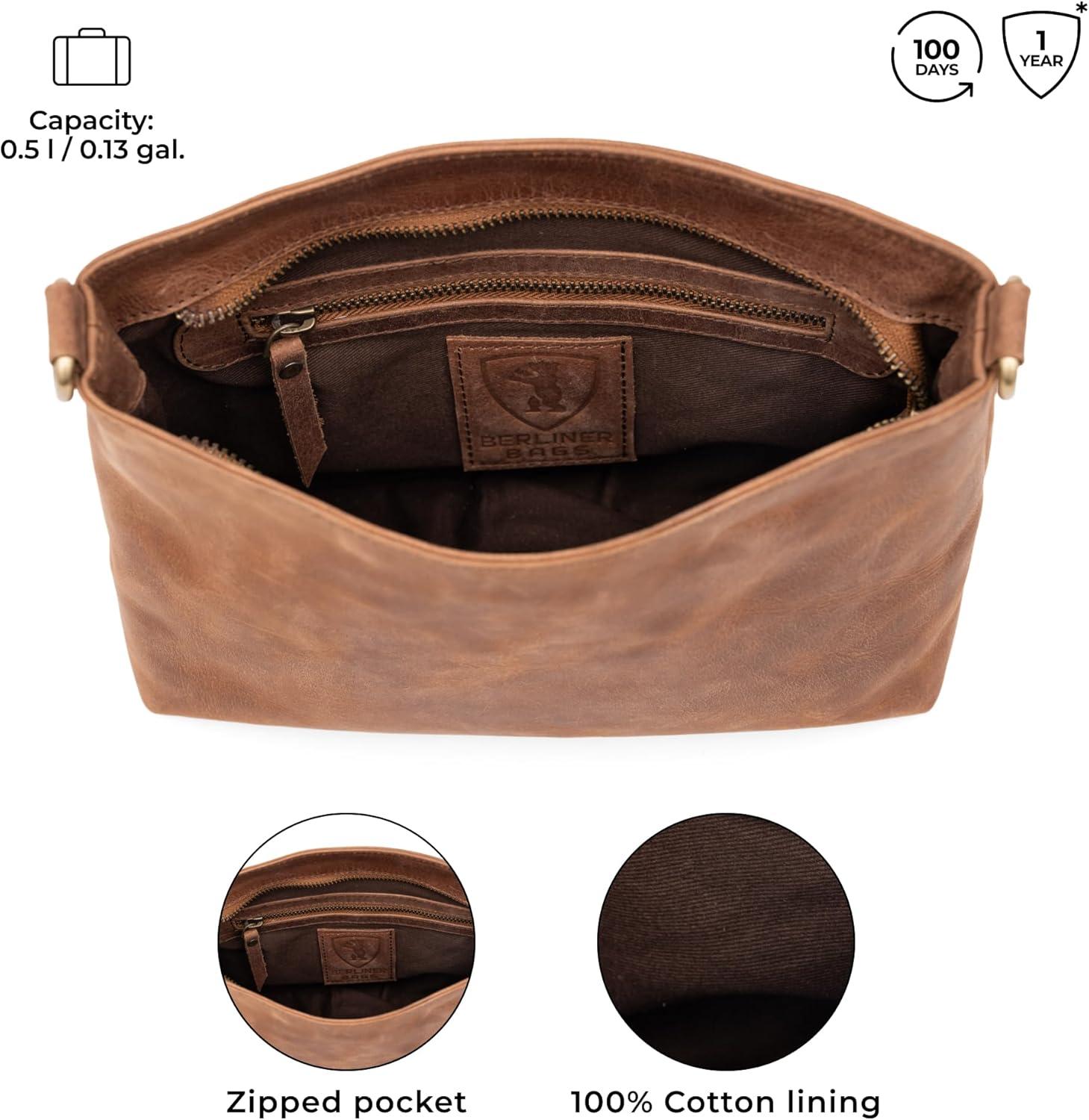 BERLINER BAGS Vintage Genuine Leather Shoulder Bag Marbella S, Small Crossbody Purse for Women(Brown)