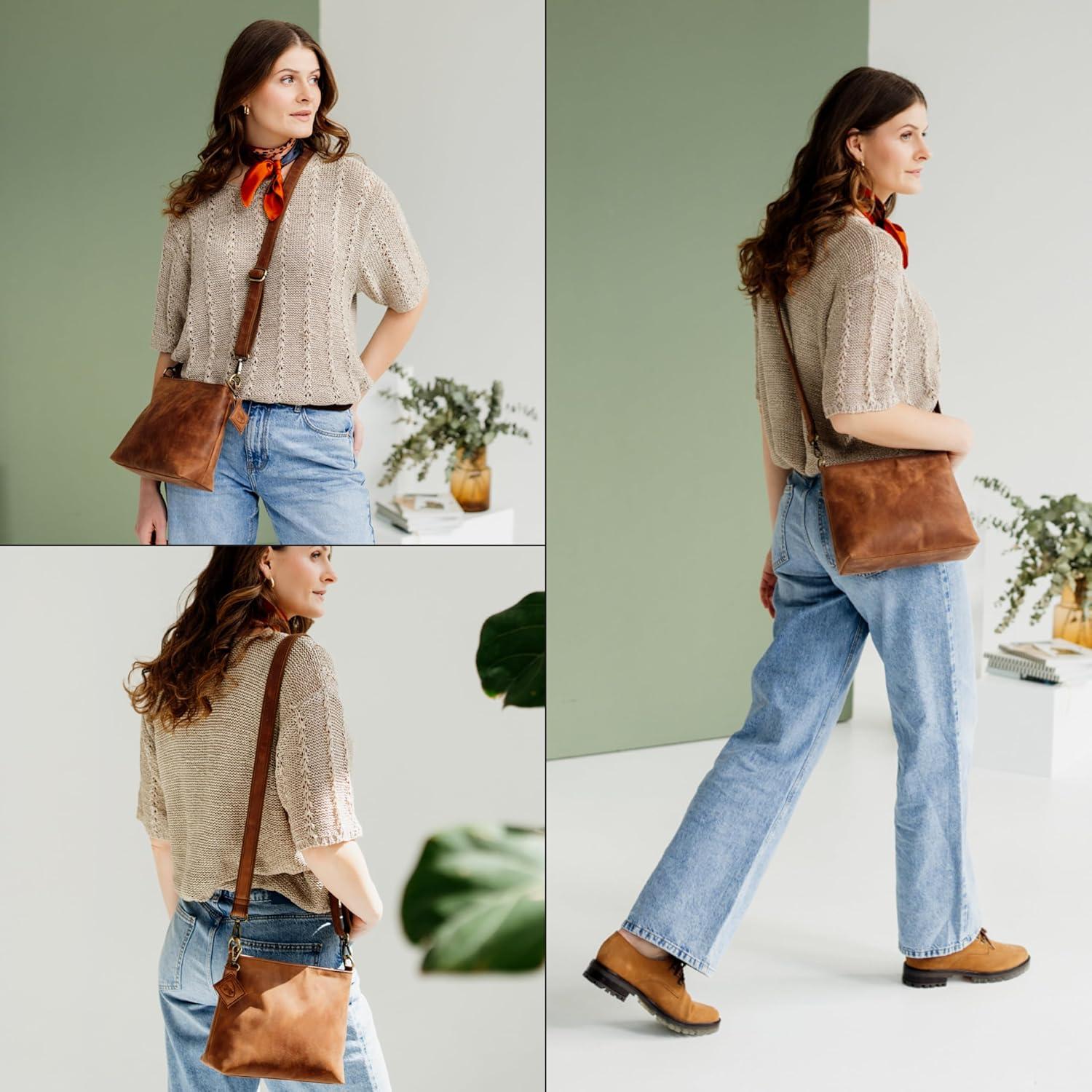 BERLINER BAGS Vintage Genuine Leather Shoulder Bag Marbella S, Small Crossbody Purse for Women(Camel)