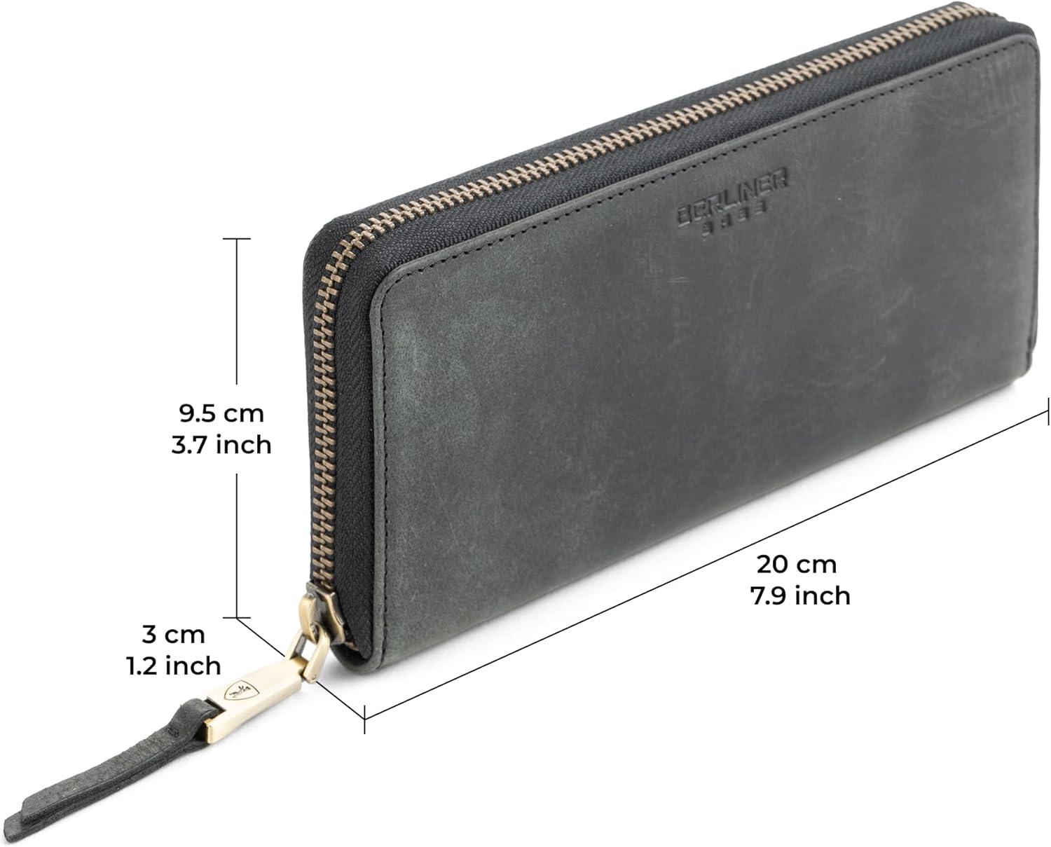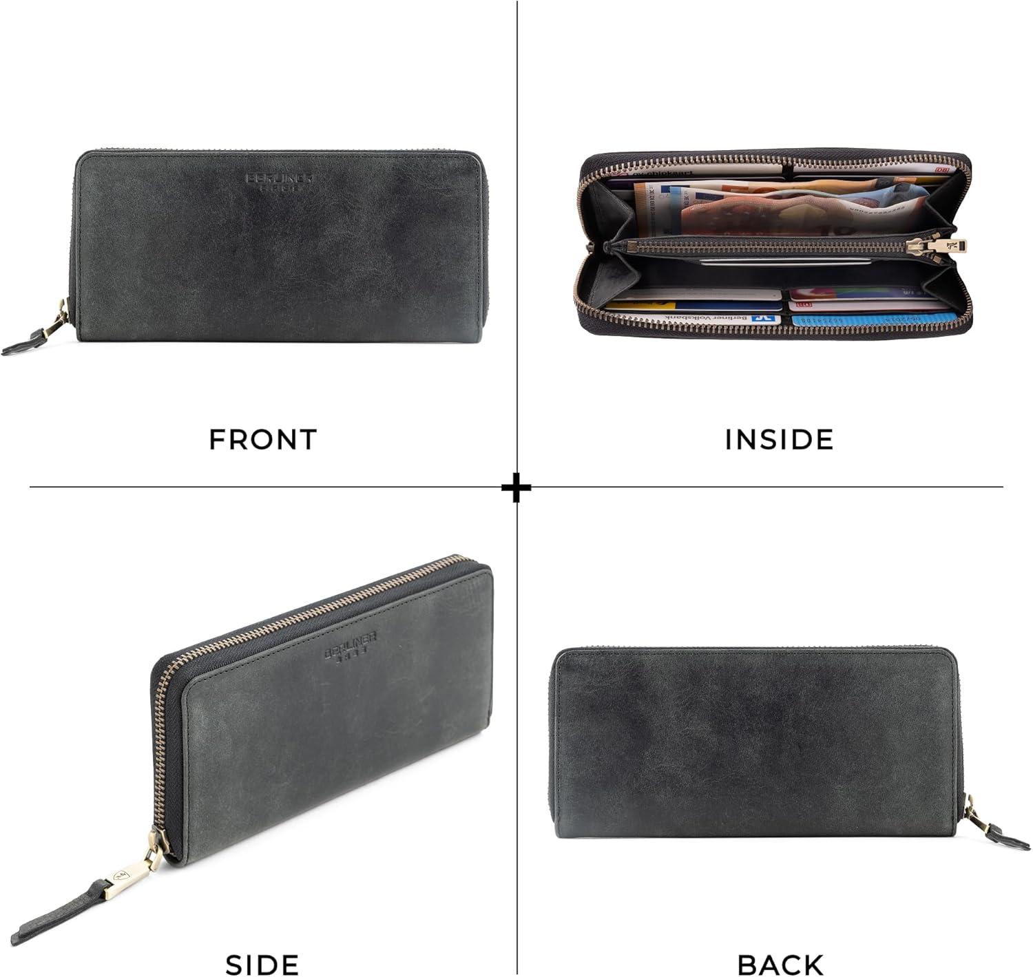 BERLINER BAGS Vintage Genuine Leather Wallet Palma, RFID Blocking Credit Card Holder, Slim Womens Wallet, Zip Around Wallet for 14 Cards, Bills, Coins, ID Window – Dark Grey(Dark Grey)
